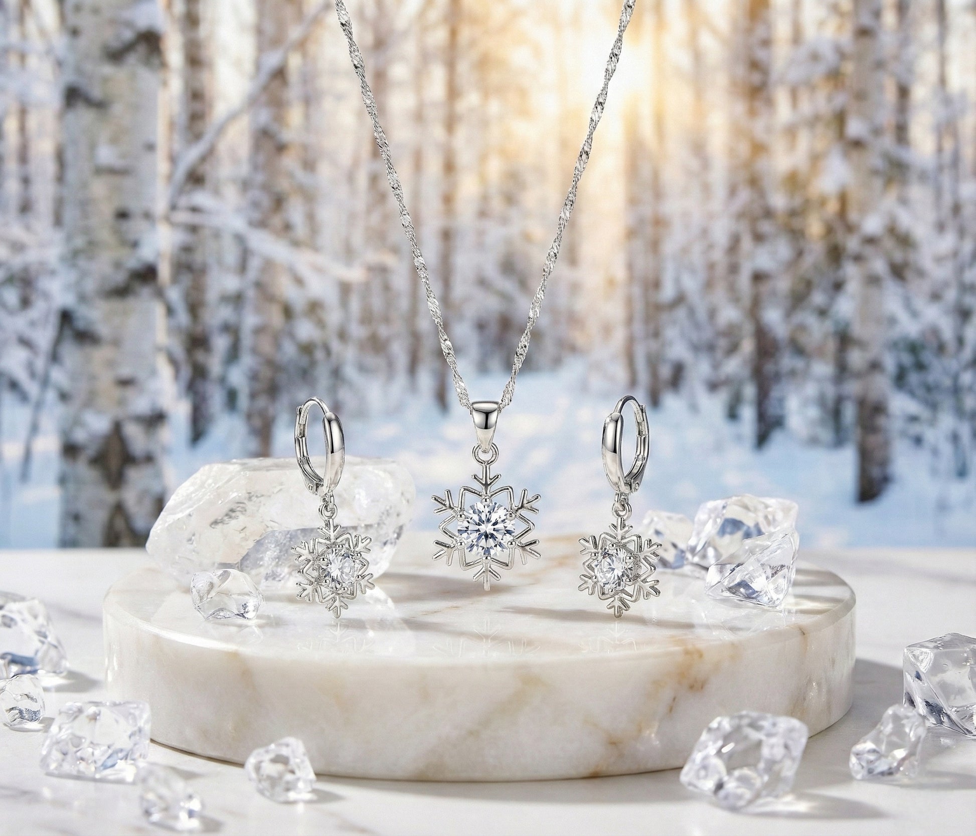 This snowflake set offers a beautifully balanced design that reflects light with every movement. A thoughtful choice for gifting or everyday elegance, created to feel refined and special at an approachable price.